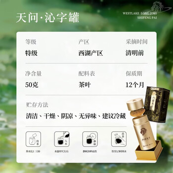 狮峰牌2026年新茶上市绿茶西湖龙井茶叶明前特级50g沁字商务罐装礼盒
