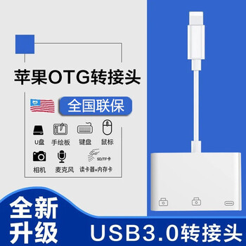 苹果lightning转双USB转换器*1、包装盒*1、说明书*1