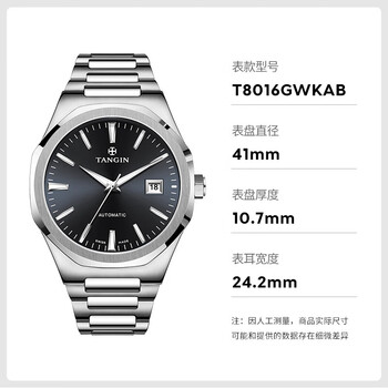 天珺(TANGIN)瑞士自动机械表瑞表 男士原装商务防水男表 送男友 T8016GWKAB