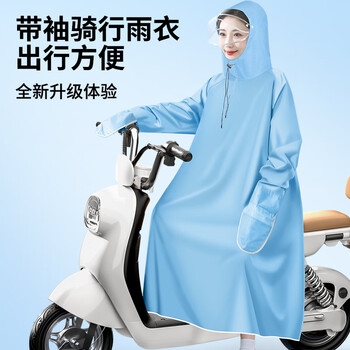雨航(YUHANG)电动车雨衣电动车专用电瓶车雨披带袖款蓝色4XL