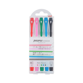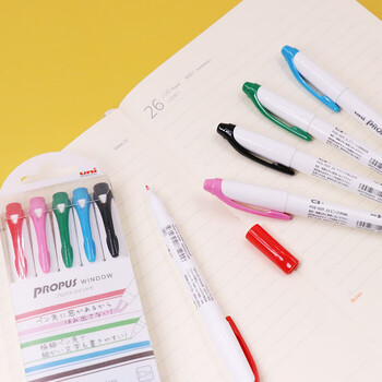 uni三菱 双头荧光记号笔 学生作业手账绘画标记笔彩色笔 细0.4mm粗4mm PUS-103T 5色基础色套装