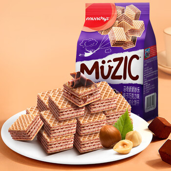 马奇新新马来西亚进口巧克力榛子夹心威化饼干休闲零食年货办公室小吃90g