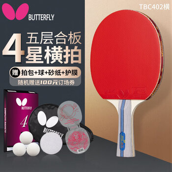 蝴蝶(BUTTERFLY)四星级乒乓球拍横拍双面反胶乒乓拍单只402含拍包