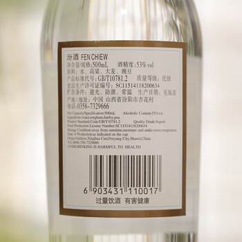 汾酒 出口玻汾 清香型白酒 53度 500ml*12瓶 黄盖铝盖 整箱装