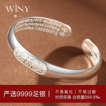 唯一(Winy)银手镯女款足银9999实心镯子老人正品纯银饰品生日礼物送妈妈长辈
