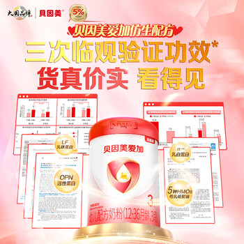 贝因美(Beingmate)爱加12-36月幼儿奶粉大罐3段800g 含乳铁蛋白+HMO+OPN