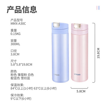 虎牌(TIGER)保温杯梦重力轻巧弹盖不锈钢保温/冷杯MMX-A30C-PD雏菊粉300ml