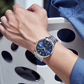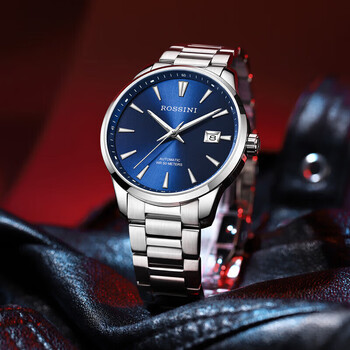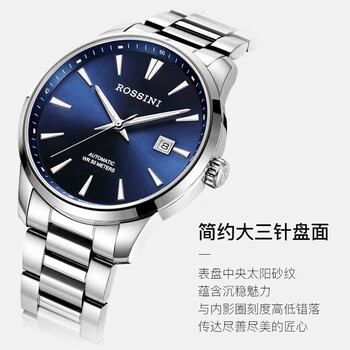罗西尼(ROSSINI)手表男机械表 男士手表生日礼物商务日历蓝盘钢带519935