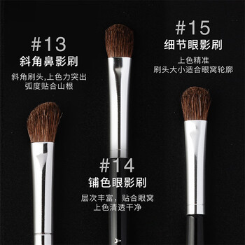 15号小号眼影刷1支、13号斜角鼻影刷1支、14号中号眼影刷1支
