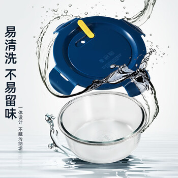 厨具---厨房储物---保鲜盒创得星海蓝圆1000*2ml+深蓝圆包+餐具