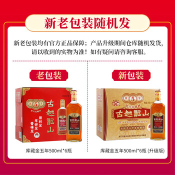 古越龙山 库藏金五年 半干型 绍兴黄酒 500ml*6瓶新老包装交替发