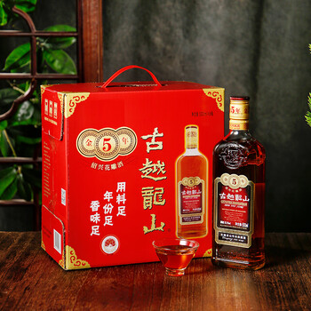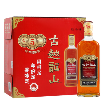 古越龙山 绍兴黄酒 中央库藏 金五年 绍兴花雕酒 500ml*6瓶 整箱装