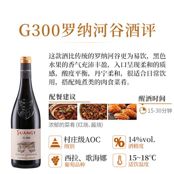 圣芝(suamgy)G300罗纳河谷村庄级AOC干红葡萄酒 750ml*6瓶整箱装 法国进口红酒