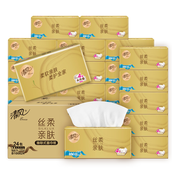 清风(APP)抽纸 丝柔4层100抽24包纸巾M码