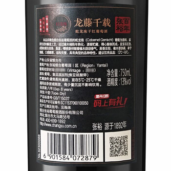 张裕旗下龙藤名珠 特选级蛇龙珠干红葡萄酒750ml*6整箱红酒
