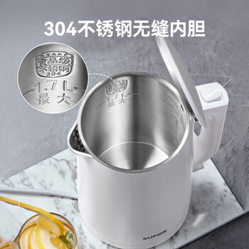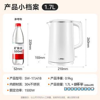 苏泊尔(SUPOR)电水壶 双层防烫烧水壶热水壶1.7L 全钢无缝内胆304不锈钢电热水壶大容量 SW-17J418