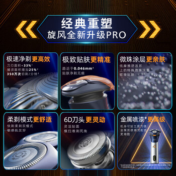 飞利浦电动剃须刀旋风3系PRO刮胡刀礼盒 风驰切剃6D浮动刀头 生日礼物送男生男友老公父亲