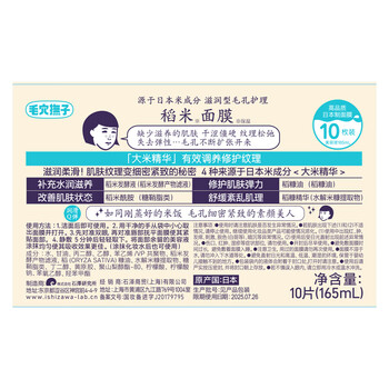 石泽研究所(ishizawa)毛孔抚子大米面膜保湿面膜10片稻米面膜大米精华红品