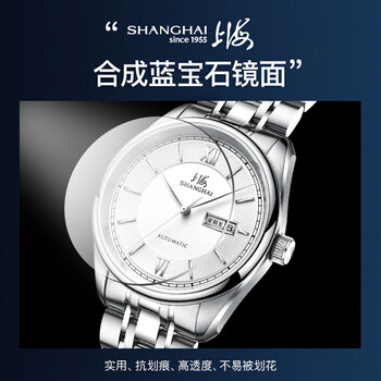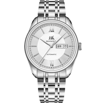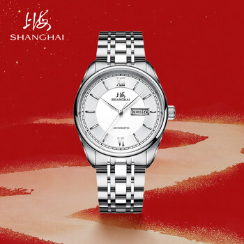 上海(SHANGHAI)手表男款 男士自动机械表 国民系列 经典双历白盘钢带SH3008N-1