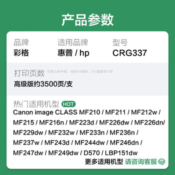 彩格crg337硒鼓适用佳能mf243d硒鼓MF215 MF236n MF232w 212W lbp151dw打印机墨盒佳能mf211硒鼓