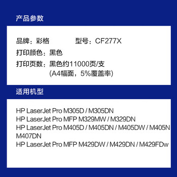 彩格适用惠普m329dw硒鼓m405dn/dw m305d m405d硒鼓hpM429fdw/fdn m429dw打印机墨粉盒碳粉CF77X带芯片cf277a硒鼓
