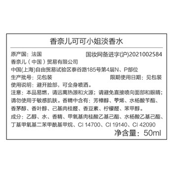 香奈儿(Chanel)可可小姐淡香水50ml礼盒装oco女香清新香调生日礼物送女朋友老婆