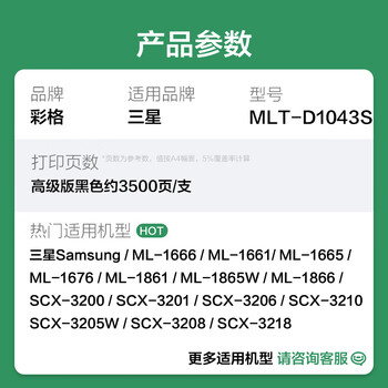 彩格MLT-D1043S硒鼓大容量1支适用三星ML1666 1670 1861 1860 1676 1660 1661 1865打印机SCX-3201 3206 3208粉盒