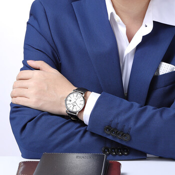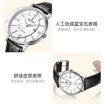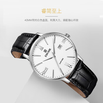 依波(EBOHR)手表男 大师系列白面牛皮带石英男表生日节日礼物送男友36070138