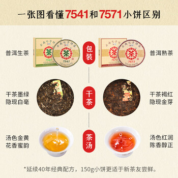 中茶茶叶云南普洱茶云南七子饼茶7541小饼茶生茶150g盒装 中华老字号