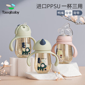 taoqibaby学饮杯鸭嘴杯PPSU宝宝吸管杯儿童水杯婴儿吸管奶瓶幼儿园防摔杯