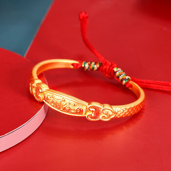 梦金园 宝宝黄金手镯足金聪明伶俐金镯子半镯本命年红绳送礼