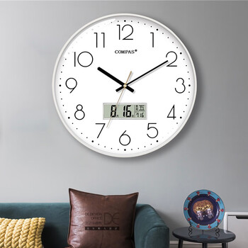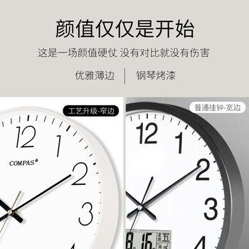康巴丝(Compas)挂钟客厅钟表 万年历简约石英钟表挂墙时钟 C3242Y 纯洁白 28cm