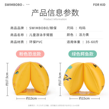 swimbobo儿童游泳手臂圈宝宝游泳圈水袖漂泳圈儿童游泳装备BO1100粉色恐龙