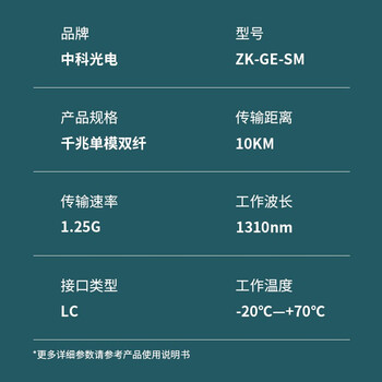 中科光电 千兆光模块 SFP光模块 1.25G单模光模块 单模双纤 1310nm,10KM LC接口 一只 ZK-GE-SM