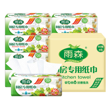 雨森(YUSEN) 厨房抽纸80抽*6包2层加厚吸油纸擦手纸厨房料理纸源头直发包邮