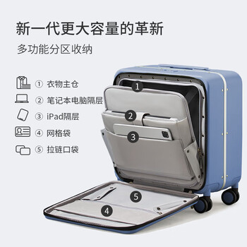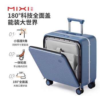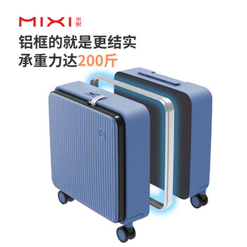 米熙前开盖铝框箱拉杆箱子行李箱密码箱包男旅行登机箱18英寸宝石蓝70