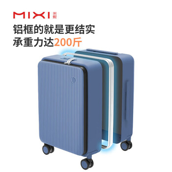米熙前开盖铝框拉杆箱李箱女大容量旅行箱密码箱男20英寸宝石蓝70