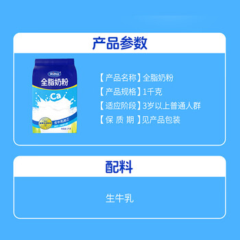 完达山全脂奶粉1kg成人奶粉高钙高蛋白0添加白砂糖学生全家奶粉冲饮烘焙