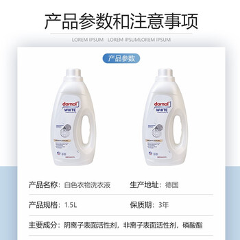 Domol洗衣液1.5L 白色浅色衣物护理固色洗衣液 深层去污渍增白提亮