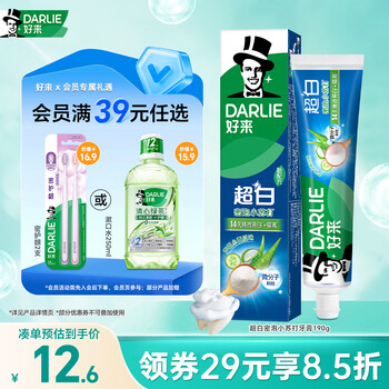 好来(DARLIE)【白鹿推荐】超白密泡小苏打牙膏亮白去黄芦荟小青瓜190g新旧包装