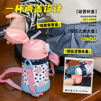 孔雀(Peacock)儿童保温杯 带吸管儿童水杯便携小学生幼儿园宝宝用