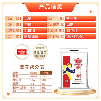 风筝特一粉5斤 中筋小麦面粉 馒头/面条/饺子粉 原料