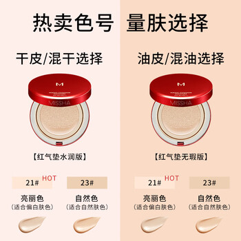 谜尚(MISSHA)魅力水感润采三芯气垫BB霜SPF45/PA+++经典版[23号]遮瑕粉底液
