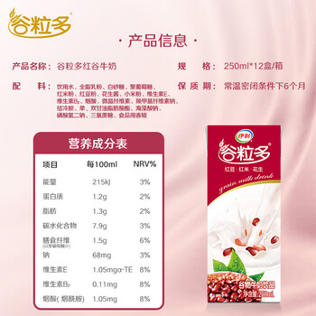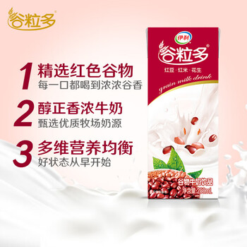 伊利谷粒多红谷牛奶饮品红豆+红米+花生250ml*12盒/箱