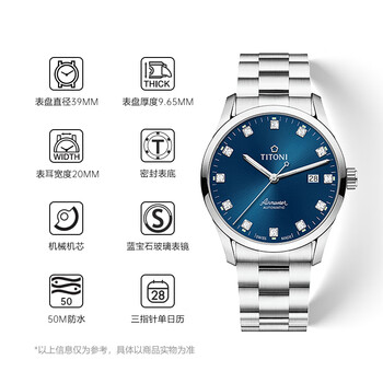梅花(Titoni)瑞士手表男士自动机械表 进口腕表 空霸系列 钢带39mm83743-S-656