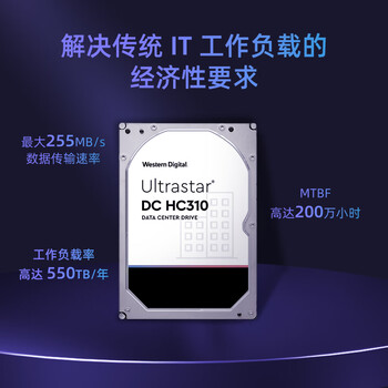 西部数据(WD)6TB 企业级机械硬盘DC HC310 SAS 7200转256MB CMR垂直 服务器硬盘 3.5英寸HUS726T6TAL5204