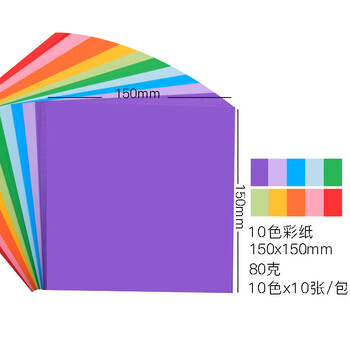 凯萨(KAISA)100张彩色折纸 10色彩纸正方形卡纸儿童DIY手工剪纸美工纸15cm