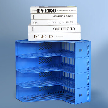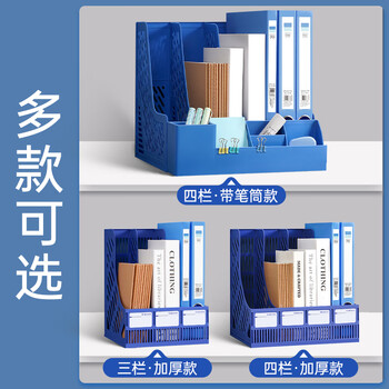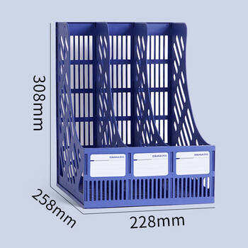 西玛(SIMAA)三联镂空桌面文件框书立架 带标签办公室文件架/文件栏/文件筐/资料收纳框 商务蓝 6896