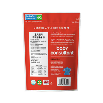 宝贝顾问有机米饼韩国原装进口出游宝宝零食儿童零食磨牙棒苹果味20g