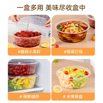 特美居(temeiju)一次性饭盒圆形透明塑料快餐盒加厚带盖打包盒餐具30套装3000型